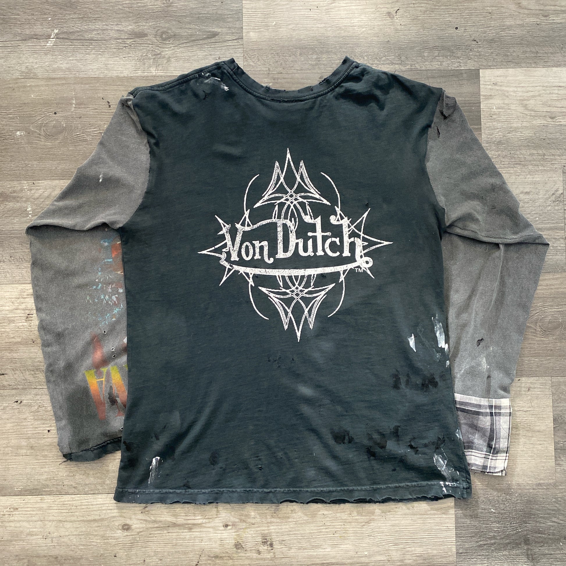 HOW FUCK WHY REBUILT LONG SLEEVE MADE FROM VINTAGE VON DUTCH, MODERN NIRVANA, AND DISCARDED FLANNEL